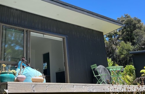 Kick back and relax in this calm, stylish space in the heart of a food forest. Bananas, blueberries, figs, pomegranates and a cornucopia of other organic edibles may just be ready for you to sample off the tree, and 2km down the road there is the most beautiful white sand beach where you can swim, spearfish, snorkel or just relax. Situated close to Parua Bay village and Whangarei Heads offering heaps to do, or if you prefer to just chill in the cabin, you have complete privacy for that.