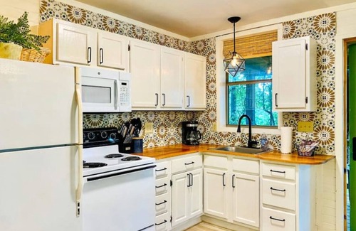 This Cottage sleeps two in one bedroom with a queen bed, full bath with stand up shower, and kitchen stocked with all the basics. The Living Room has a loveseat and dining area for two with a smart tv that is logged into Netflix. The covered porch wraps two sides of the Cottage and offers a view of the White River in Summer and more sweeping views when the leaves fall in the colder months. There is no direct access to the River, but this property is less than 5 minutes from River Access and 7 minutes to Sylamore Creek Access. There is a Washer/Dryer in the cottage.