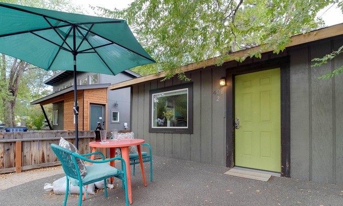 The Little Lava Cottage is in downtown Bend! Walk or ride one of the provided cruisers everywhere! Located in a quiet residential portion of downtown, you will have the best of quiet urban downtown living! This is a whole house! No shared walls, it's entirely yours to enjoy. Bamboo floors, concrete counters, and even a full kitchen for cooking! Petite but powerful, you'll find modern appliances and lots of cooking tools. Little Lava offers a comfy king bed with high thread count linens, small front yard and a BBQ too!