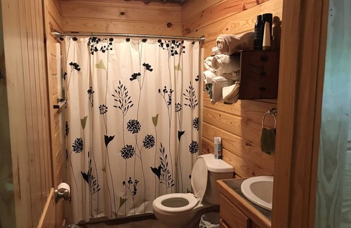 The cabin is stocked with towels, wash clothes, dishes, cookware, eating/cooking utensils, grill, washer and dryer. Two bedrooms have a queen-size bed with bedding/pillows and Roku TV in every room. Third bedroom has two full size beds with same amenities as other rooms. There is also an air mattress and extra twin mattress for those extra guest.