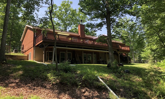 The main level has 3 bedrooms and 2 full bathrooms. The master bedroom has a queen bed with a full bathroom that includes a stand up shower. There are 2 additional bedrooms with 2 twin beds in each room next to a full bathroom. Walk out of the fully equipped kitchen to a large back deck (56' x 12') to grill or spend time with your family. The lower level has a full kitchen, master bedroom (queen bed) and a full master bath. The master bathroom has a shower and an Jacuzzi soaking tub with jets. The open living/dining space has a wood burning fireplace to enjoy each evening. We need to be notified if are going to use fireplace. I will walk you through proper procedure to use it. We also have a local person that can supply you with firewood for a fee delivered. I can give you his number, just message me through the app. The lower level has a walkout patio to access a fire pit in the backyard to roast marshmallows.