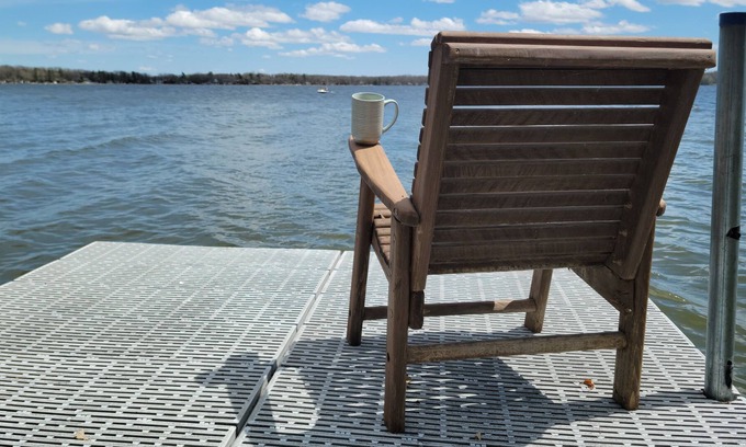 Outside enjoy the private and spacious lot with a great view over the lake. No stairs needed! A sloped path to the water leads to a private dock and beach/water area where you can enjoy the use of our pedal boat, paddleboards or kayaks. Bring your boat and tie up to the dock to take advantage of the great fishing the lake has to offer.