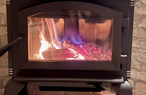This large 2 bedroom vacation home is located near the lake shore. It has a 17’ x 24’ living room featuring two large picture windows and a Ben Franklin fireplace.
