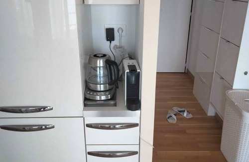 The air-conditioned apartment consists of 1 bedroom, a living room, a fully equipped kitchen with a fridge and a coffee machine, and 1 bathroom with a shower and bathrobes. Towels and bed linen are offered in the apartment.