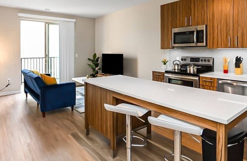 Unwind in the stylish 1-bedroom home in central Fairfax, with a grocery store and a café on-site. Numerous retail shops and eateries are within walking distance.