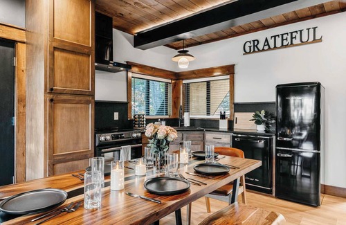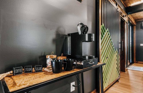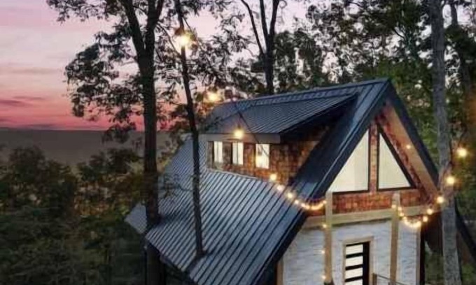 Accommodating up to 8 guests, the treehouse features 1 cozy bedroom downstairs with a full bath and an upstairs open concept bedroom with an additional full bath, making it ideal for families seeking both comfort and adventure. The space includes a fully stocked kitchen, perfect for preparing meals, and a welcoming back deck where you can relax and soak in the natural beauty. Inside, you'll find a robe bed for ultimate relaxation, an electric fireplace for cozy evenings, and three smart TVs for entertainment.