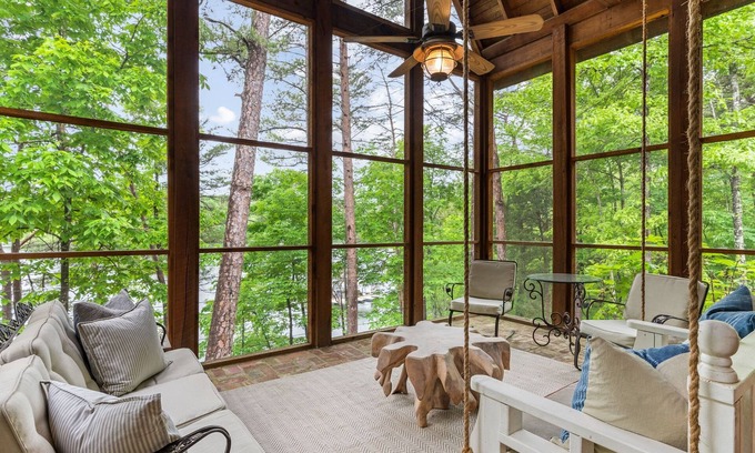 The property is tucked away from any busyness, on 3 acres, with 300ft of water front, with plenty of privacy and serenity. It is a beautiful walk on river rock down to the boat dock (no long, steep, staircase). We are off the main channel of the lake (big water), where there is much less traffic, waves, and noise. There is a national forest across from us and so, instead of seeing boat dock after boat dock, your view is lake, woods, and the sunset every evening. The feel and look of our home is designed & decorated to be a true lake house experience. Our home is beautiful, private, serene, absolute heaven. Thank you for your interest.