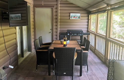 Forget it all and relax like never before in this new updated property with wood floors, and all the luxuries your looking for! The screened in back patio is perfect to unwind with smart tv, blackstone grill to cook out and sofa, seating and 6 top dining table to play games until late in the night. The tennis court and pool are steps away and Mountain Harbour is a great place to unwind and bring the boat for one of Americas cleanest lakes, go fishing, diving, or just walk the hills and enjoy the deer as they walk by! Restaurant at the lodge if you don't want to cook and others nearby. Checkers and a baby pool too. Wegman and other Crystal searching mines close by and Camp Ozark for those campers going or coming home.