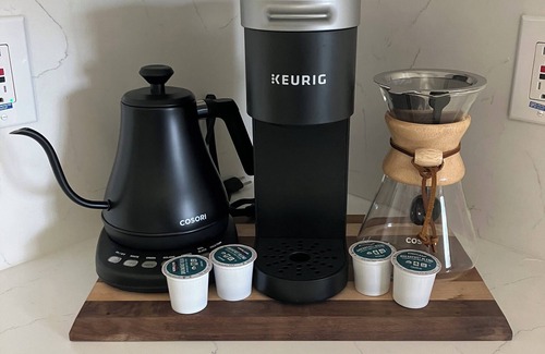 The home is furnished with a full kitchen including a full size refrigerator, stove, microwave and coffee station. In the kitchen you will find everything you need: pots, pans, plates and more!