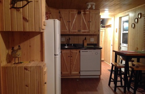 - a deluxe kitchen with handmade cabinets, a dishwasher, and the conveniences of home.