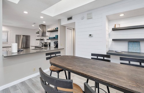 Come make some memories! Newly renovated from top to bottom! 2-bedroom, 2 bath condo with a new enclosed sunroom off the living room. This wonderful condo is open and bright and offers a beautiful modern kitchen with all new counter tops, and new stainless-steel appliances. There is plenty of room for all 6 guests at the high-top dining table.