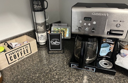 The kitchen features a brewing station to sip on your favorite coffee or tea. Property offers all appliances & cooking accessories.