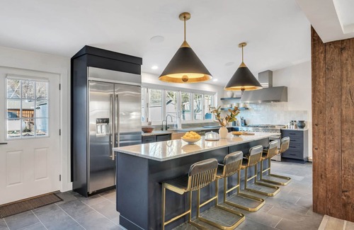 Recently renovated and professionally designed, The Lodge is the perfect vacation home for families or a group of friends looking to explore everything Hunter Mountain and Windham Mountain has to offer! Located directly across the street from Hunter Mountain and only a 15 minute drive to Windham Mountain, and is equipped with all the amenities your heart desires. As you step inside, you will notice the open floor plan, abundant light throughout, high-end finishes and multitude of areas to hang out and relax or have fun. On the main level you will find a newly furnished living and dining room, perfect for family dinners and relaxing together after a long day on the slopes. Not to mention the windows lining the front of the property offering amazing views of Hunter Mountain! The full kitchen with expansive island and stainless steel appliances is the perfect set-up to create an amazing culinary masterpiece. The window in the kitchen opens accordian-style, resulting in an indoor/outdoor bar with a countertop to serves drinks and appetizers on. If you like to host, nothing beats this setup.