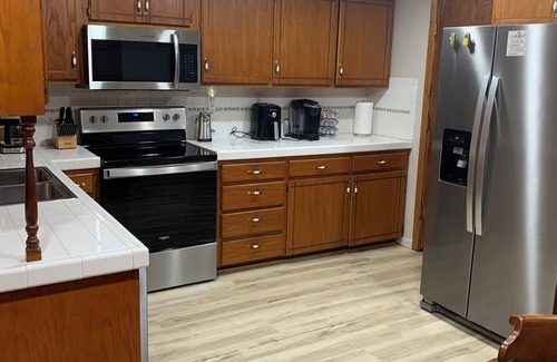 This 3-bedroom house in Eufaula is perfect for your escape to relaxation. With 1 king bed and 2 queen beds, guests will have plenty of space to unwind. The cozy living room with a sofa bed adds an extra touch of comfort. Large patio provides plenty of room for your parties enjoyment with a gorgeous view of the lake. Enjoy the convenience of amenities like AC, WiFi, continuous hot water heater, outdoor grill and a washer and dryer. Smart TV's are in each bedroom as well as living room. The 2 bathrooms are equipped with a hairdryer and shower. There is a boat ramp in the neighborhood about a mile away. There is plenty of parking for vehicles and boats. Fall in love with Eufaula and enjoy the magic it has to offer.