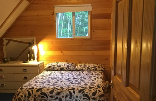 Relax on the large deck over the water or build a fire on the shore and listen to the loons while you enjoy spectacular sunsets. Our off-grid, solar powered cabin can accommodate 6 people comfortably, but guests need to conserve power consumption. The cottage has a fully equipped kitchen, a bathroom with shower and composting toilet, as well as an outhouse. There is a filtration system that provides clean drinking water.