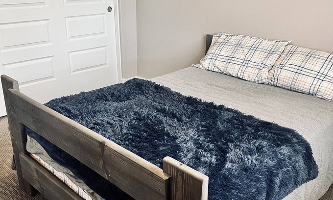 Enjoy a cozy stay with king and full size beds. Great for large groups, sleeps 10 comfortably. Children and Pets welcome. Plenty of seating. 4 bar chairs, 6 person dining table, BBQ, kitchen, SmartTV, office set-up, home is in front of the park/greenbelt.
