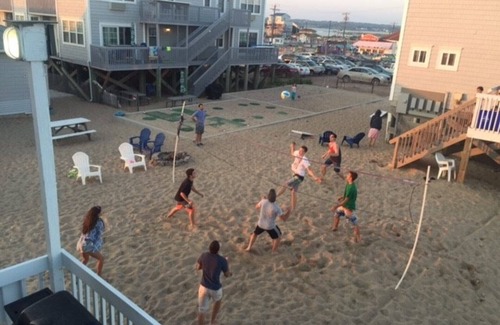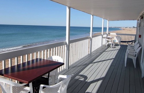 Beachfront property located on the energetic Misquamicut Beach. Sleeps 6, 2 bedrooms - 1 queen bed, 1 bunk bed (full and twin), a chair sleeper, with 1 full bathroom, and fully equipped kitchen with dinette. Accessible by 1 flight of stairs from the parking lot. Private beach with chairs, and indoor pool. Next door to the WindJammer, ice cream and a small amusement park. A 10 minute drive to Watch Hill, and 20 minute drive to the casino/outlet shopping. Or just stay sip your morning coffee, eat lunch/dinner on the deck while you watch and listen to the waves all day long. Lots to do for kids, or just relax, you decide.