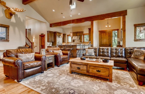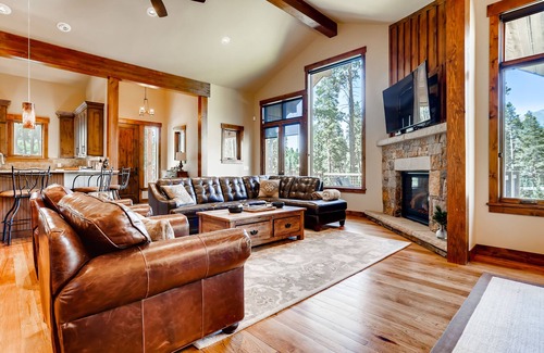 Beautiful 4,100 square foot mountain home mere minutes from downtown Breckenridge. Amazing views of the Ten Mile range including the ski mountain. Located in the Highlands at Breckenridge: hike or bike the flume trails system from the front door, quick drive to Breckenridge ski area, golf/cross country skiing, fishing, and more. Base camp for all of your outdoor Colorado adventures! The perfect getaway any time of the year. Sleeps 14, all in beds (maximum of 10 adults). Plenty of room for your whole crew with 3 king bedrooms including in-suite baths and 2 bunk-rooms: one with twin/twin and twin/queen bunkbeds and one with queen/queen bunkbed. All furniture in lower level bedrooms and in the main master is new and custom made by Cleveland Creek Log and Lodge Furniture. Two living spaces with large TVs and gas fireplaces. Challenge your friends to a game of shuffleboard in the lower level. Curl up with a book in the cozy loft. Gather your crew around the large dining table. Relax and take in the amazing views from several windows or step outside to breathe in the fresh air while you relax on the deck or in the hot tub. In-floor radiant heat throughout will keep your feet toasty in the winter. Perfect for a couples getaway, multi family or multi generational vacation. Sorry, no guys weekends or events.