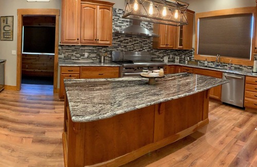 4 large bedrooms upstairs (1-queen 2 twin bunks, 1-queen 1twin bunk, 1-queen 2 twin bunks, last 1-queen 3 twin bunks) all with en-suite Bath, Main Floor 1 queen bed with separate bath, Kitchen, Dinning Room (5 tables), Pool Room, Washer/Dryer in 1/2 bath. Basement area Game Room with Video/Pinball, Ping Pong, Pool Table and