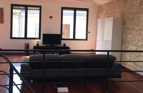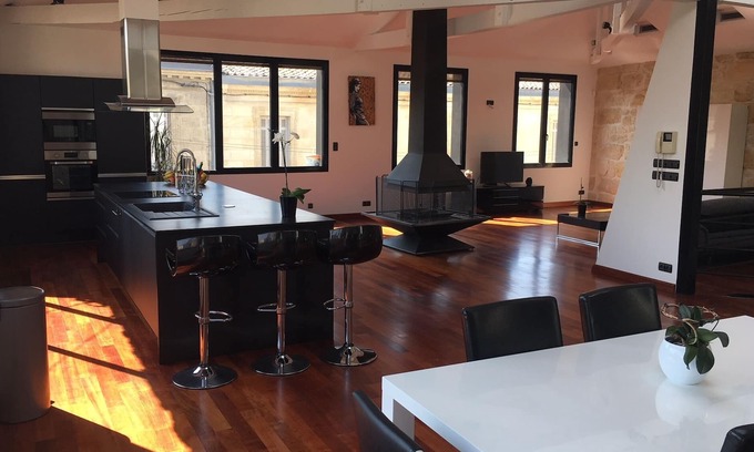 Magnificent loft of 200 m2 entirely renovated in the contemporary spirit located in the heart of bordeaux to 1,9 km of the mirror of water. Tram and bus nearby. The loft has 4 bedrooms and 2 bathrooms. The Loft is fully air conditioned and has a fireplace for the winter evenings. The accommodation is close to all shops (bakery supermarket pharmacy and restaurant 200 meters). St Jean train station is in the immediate vicinity.