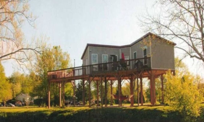 Enjoy the serene setting and climb the spiral staircase to "The Loft at Captain Tuttle’s" - located 1/2 mile from Downtown Paris, KY. The Cabin is a stable engineered elevated structure - keep in mind it's not like being in a concrete bungalow. Bring your Kayak and a fishing pole and paddle past Claiborne and other internationally known farms, a short distance up stoner creek.
