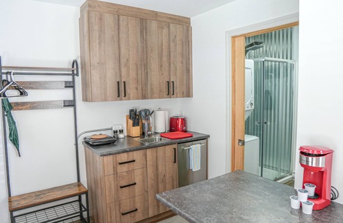 Short-term apartments with full kitchen, washer and dryer, living room with television, high-speed internet, charging stations for electric vehicles and a large common area with hot tub accessible all year round. We are located next to everything you might need, pharmacy, grocery store, cinema and restaurants (you can also see the famous Ti-Oui from the building). A must for everyone and anyone who wants to stay in the region.