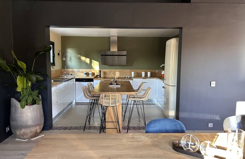 The kitchen with its central island, its cooking piano is fully equipped (microwave, robot, nespresso ...)