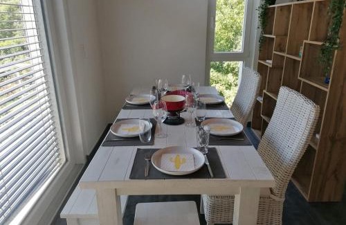 Loft lumineux et confortable offers accommodations in Grimisuat, 3.9 miles from Sion Golf Club and 10 miles from Crans-sur-Sierre Golf Club. Mont Fort is 13 miles from the apartment and Anzère is 5.6 miles away. The apartment is composed of 1 separate bedroom, a fully equipped kitchen, and 1 bathroom. A flat-screen TV is offered. The accommodation is non-smoking. Sion Airport is 3.7 miles from the property.