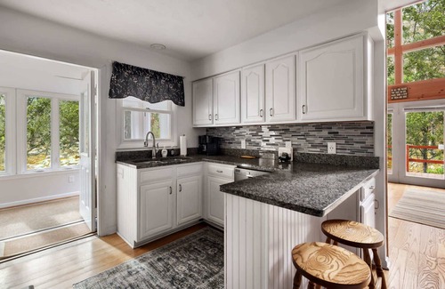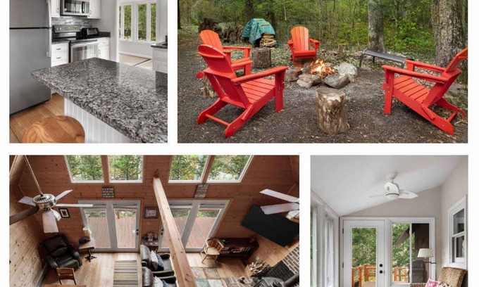 Creekside Chalet is your mountain retreat in the heart of West Virginia. As you step inside, you'll be greeted by the warmth of the wood stove, soaring A-frame ceiling and large windows providing stunning views of the surrounding forest and the tranquil creek just outside. The living room, with comfortable seating, games and puzzles, invites you to unwind after a day of hiking or exploring, while the fully equipped kitchen offers everything you need to prepare home-cooked meals.