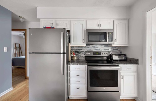 - Fully-equipped kitchen with stove/oven, microwave, and refrigerator