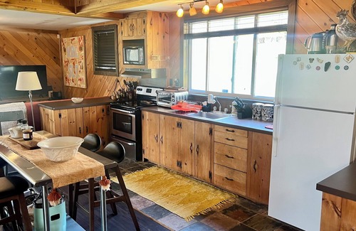 On the other loft there are a full bedroom and a bedroom with 2 twin beds that can be joined to form a king size bed. Another full bathroom is on the main floor with stone floors and waterfall tile in the bathtub. All bedrooms have closets and drawer space. There are multiple seating areas including a breakfast bar, a TV nook, a large DR, a scenic LR, multiple desk areas, a beautiful porch with BBQ on the main floor, 2 additional sofas in the multi use mud room/fitness area and an outdoor firepit. The property also includes a washer/dryer and WiFi. There is a badminton set and croquet set in the garage. We offer one 5 gallon water in the water cooler in addition to the well water on tap. There is hot water baseboard heat on the main floor and additionally electric radiators in the MBR. In the summer, we avoid A/C as much as possible to be light on the footprint. Even in the summer the home is cool. Please inquire if this is a must for you and we can add some units for an additional fee.