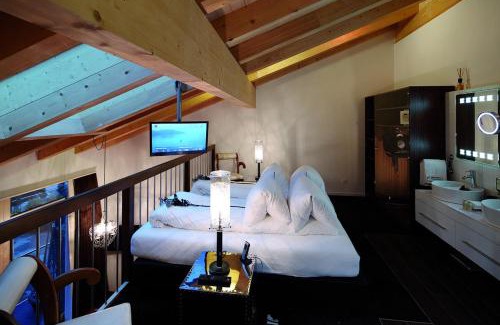 Located in Saas-Almagell, 5.7 miles from Allalin Glacier, Loftsuite Hotel Saas provides accommodations with free bikes, free private parking, a fitness center and a garden. Among the facilities of this property are a restaurant, room service and a 24-hour front desk, along with free WiFi. A spa and wellness center comprising a sauna, an indoor pool, a hot tub, as well as a terrace can be used by all guests. All guest rooms at the hotel are equipped with a seating area, a TV with satellite channels, a safety deposit box and a private bathroom with a bidet, free toiletries and a hairdryer. Every room has a coffee machine, while some rooms will provide you with a balcony and others also provide guests with mountain views. All rooms in Loftsuite Hotel Saas are equipped with slippers and an iPad. At the accommodation guests are welcome to use a Turkish bath. You can play pool, table tennis and tennis at Loftsuite Hotel Saas, and the area is popular for hiking and skiing. Zermatt Train Station is 28 miles from the hotel, while Saas-Fee is 4.4 miles away.