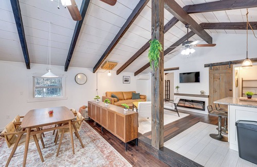 MAIN HOME: Modern furnishings, new hardwood floors, new electric fireplace, new flat-screen TV, 6-person dining table, ceiling fans
