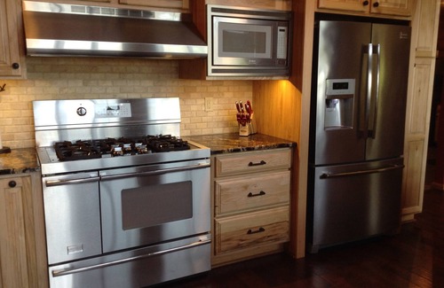 This fully equipped house boasts a king master on the main, a queen bedrooom on the main, a King master with baby bed in the basement, and a wonderful loft area with two twin over full bunk beds and a queen pull-out couch (not included in the sleeping count, but very comfortable!). The main room is open concept with kitchen, living and dining all in one large room. An additional "four-season" room is adjacent with large TV and card playing table. Expansive deck and covered patio extend living spaces into the outdoors. In back, you will find a patio with outdoor dining, and fire pit (wood burning).