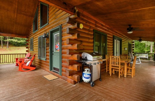 We know that you want your trip to the mountains to be all about outdoor living, and weβve got just the porch youβve been searching for. Rock the day away on the front porch, relax on the side porch in the swing with a book, grill up dinner and eat inside or out, and then finish off the night around the campfire in our locally made Adirondack chairs or a soak in the hot tub. Our cabin is secluded without being isolated. You will lose cell coverage but our high speed internet will keep you connected! We have a lovely view of our community pond (where you can watch the deer come by for a drink as the sun sets), and a whole acre for the kids to run around. We even have a hiking trail that begins just at the end of our drive.