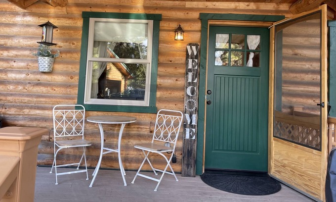 This log cabin has a queen bed, one bathroom with a very spacious shower. There is a queen blow up mattress available as well. You can bbq on the front porch or snuggle up on the couch and read a book. There are pine trees all around you with fresh crisp mountain air. There are three large pastures to choose from to keep the horses.