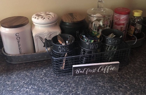 Outside we have a wonderful fire pit you can roast s’mores over or cook dinner on. Enjoy any of our lawn games of horseshoe and corn hole or just sit on the deck and relax with a book.