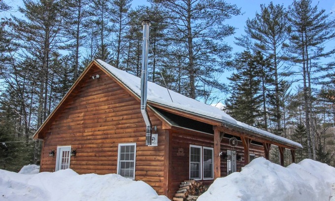 1,200 square-foot log cabin nestled in the woods of Maine between Rumford and Bethel. 15 minutes from Sunday river ski area and two other mountains. Miles of snowmobile/ATV trails to explore, hiking, biking, fishing, swimming, kayaking, golfing, skiing, snowshoeing, and more. Nature not your thing? Stay indoors and relax by the woodstove, catch a movie, explore the museums, shop, hit the spa or grab a bite at the local brewery and taste some homemade beers.