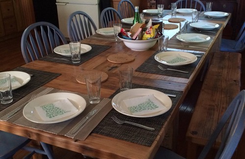 Enjoy all your home-cooked meals or morning espresso at our custom built farm table that extends to 10 feet and seats up to 12. Make s’mores and share tales of the day around the fire pit Challenge one another to horseshoes. Outdoor park-style charcoal grill available for your cookout with picnic bench (seasonal).