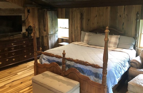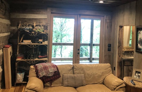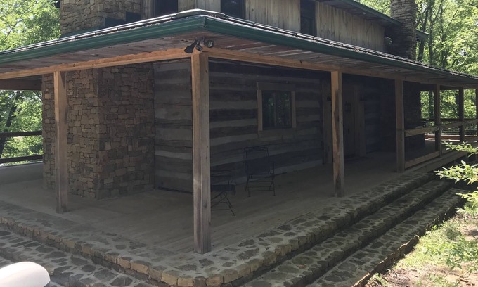 Two story fully restored authentic log cabin with large wrap around porch and open floor plan overlooking the Barren River. Master bedroom hosts a king bed and second room hosts 2 queen bunk beds with one and one-half bathrooms Large living room with couch. Two wood burning fireplaces. Kitchen includes full-size refrigerator, dishwasher, oven with cooktop and an indoor wood-fired Pizza Oven. Great for entertaining and great location for Beech Bend Raceway attendees. 1 mile from Beech Bend, Kroger and downtown Bowling Green.