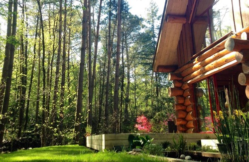 Log cabin (rough logs) among the trees and spa | Ski Chalet in Plessé