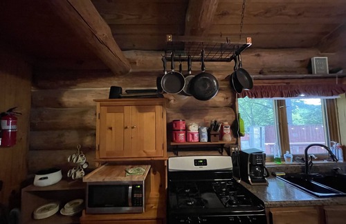 Very unique log home with a private bedroom queen size bed, pull-out queen size bed in the living room and double futon