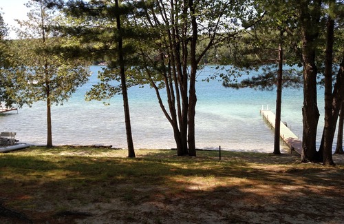 Our log cottage on Blue Lake is in a beautiful area of Northwest Michigan. If you like peace and quiet this is the lake front cottage for you. The cottage sits on 100' of frontage and is located on the East side of the lake so we get great sunsets. The fall colors are beautiful. Almost every room in the cottage has a great view of the lake. Listen to the loons calling through out the day and watch the sunset in the evening. There is wildlife galore. Blue Lake is an all sports lake connected by two other lakes. Little Blue to the South and North Blue to the North. Blue Lake is a springfed lake and it's deepest point is 85'. We have many different species of fish so bring the fishing gear and boat. We do have a 40' dock and also a 12' rowboat for your use. There are also ATV and snowmobile trails just down the road from the cottage. This area of Kalkaska County is known as the snow belt. So we get plenty of snow for snowmobiling and skiing. The Blue Bear trail runs right around this area. We have many ski resorts close by. There are many golf courses, wineries, and casinos in the area.