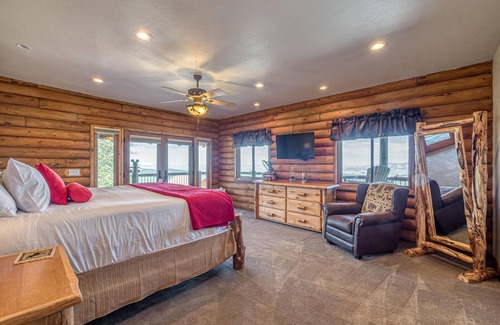 ❤️Step into the perfect log cabin retreat, tailored for the adventurer in you! Perched atop a spacious lot, enjoy panoramic views from the expansive patio and living room windows.