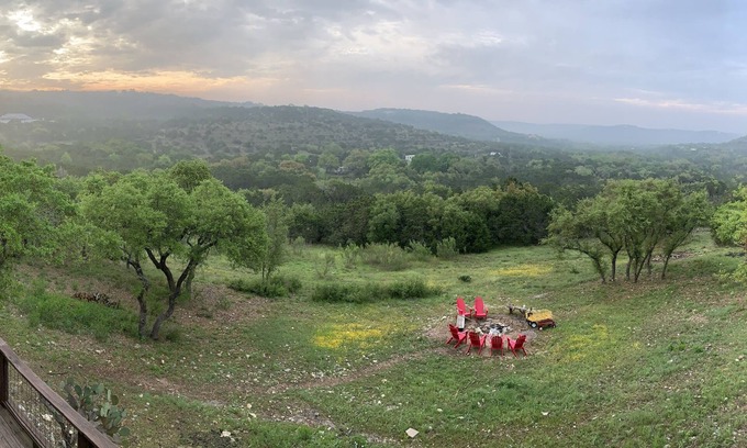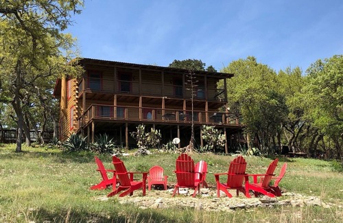 DISCOUNTS THIS WKD! Home is also rented out monthly- inquire into special pricing- LOG home w/POOL, on 4.5 acres with HUGE VIEW looking over a huge Canyon in the Hills with private firepit. LOCATION-- Only 5 minutes to Wimberley Square for restaurants, grocery, and antique shopping.