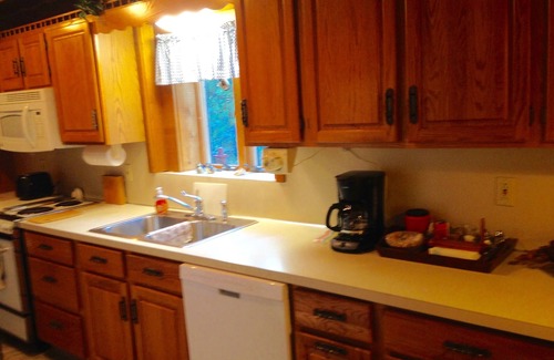 If you find the dates you need are already booked, please still call or contact me as we have a cottage right next door to this log home. It is a 2 bedroom and 1 bath home with commanding views of Hunter's Creek. AC available, so the good news is that the price is $170.00 per night. Each room has a ceiling fan and all the box fans you would ever need. Rhonda and I are calling this place the Red Cottage. It has cathedral ceilings with a full kitchen.