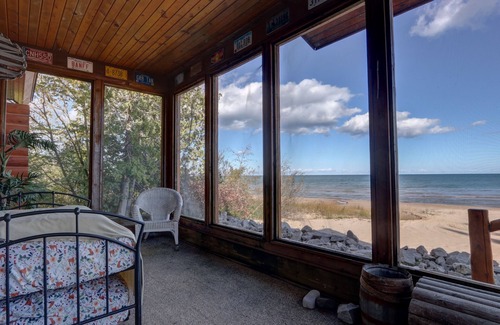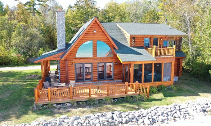 Log Home on Sandy Beach is a beautiful western red cedar log home that is located on Lake Huron, one of the 5 Great Lakes. Lake Huron provides both crashing waves and calm seas and is great for swimming, fishing and just viewing.