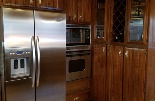 A wonderful granite and stainless kitchen is well-equipped for eating-in experiences. Dishes, silverware, pots and pans are available for your use. An outdoor grill is conveniently accessible on one of the decks overlooking the mountains.