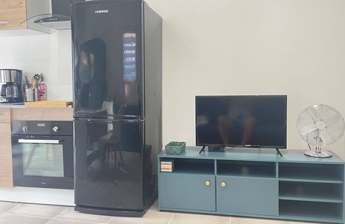 This 1-bedroom, 1-bathroom rental features a BBQ grill and air conditioning. Enjoy the WiFi and TV. Bathroom amenities include towels, toilet paper, and soap. The kitchen is equipped with an oven, a stovetop, and a refrigerator, as well as a coffee maker, an electric kettle, and a microwave. And you won't have to pack extra clothes, because you'll also have access to laundry facilities. Other amenities include bed sheets and a dining table.
