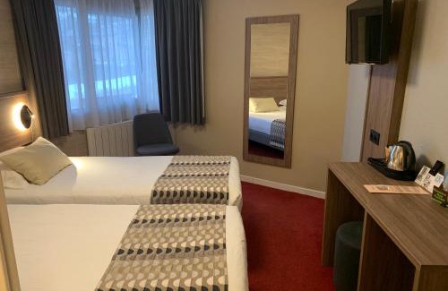 Hotel Le Lac is located in a peaceful setting, just outside the city center of Embrun. It is close to a lake that has a beach and recreational area. There is a well-being center with a sauna, hammam and spa. The hotel rooms are peaceful and offer a warm and friendly atmosphere. Each are equipped with LCD screen TV with TNT channels and a private bathroom. Savor local, traditional cuisine and seasonal dishes in the hotel’s restaurant. Dine on the terrace in the landscaped garden in the summer and by the fireplace in the winter. Guests have free access to the heated indoor swimming pool and hot tub, which are open all year round. Secure storage space for bikes and motorbikes is available.